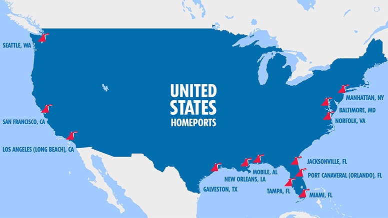 Carnival Cruise Line is proud to sail more Americans, and serve more U.S. homeports, than any other cruise line! Our operations support hundreds of jobs, leading to direct and indirect investment, bringing millions of visitors to each port community. In addition to that positive economic impact, we are active members in numerous business and community organizations, supporting local nonprofits and hosting special events. Our efforts are focused on our 13 homeport cities, giving back to the areas that directly surround and support our port operations.