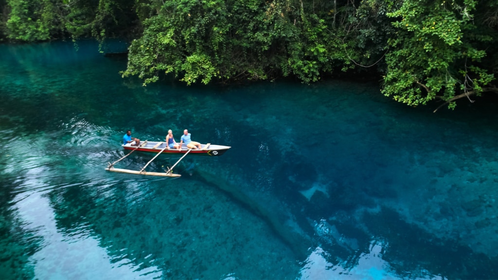 Port Orly and Champagne Beach, just 10 minutes north, are known for their white sands and crystal clear waters – where you can snorkel in the shallows, spot tropical fish darting around, and enjoy freshly caught seafood at a nearby beach hut. And if you’re feeling adventurous, Espiritu Santo is famous for its blue holes – natural freshwater swimming spots hidden among the jungle, perfect for a cool dip between beach sessions.