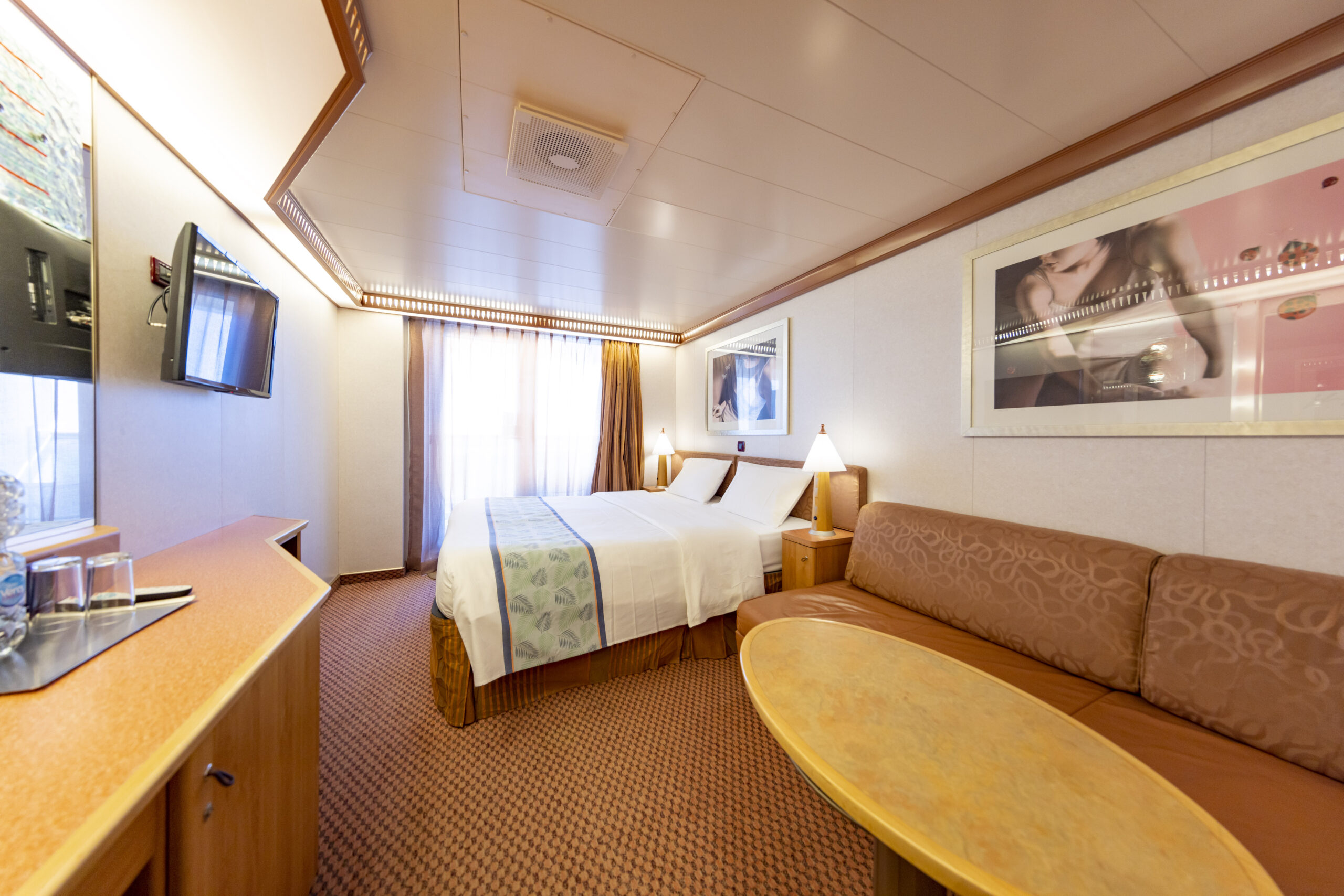 | ✔️Stateroom climate control to keep you comfy | ✔️In-room TV, safe and plenty of charging ports |