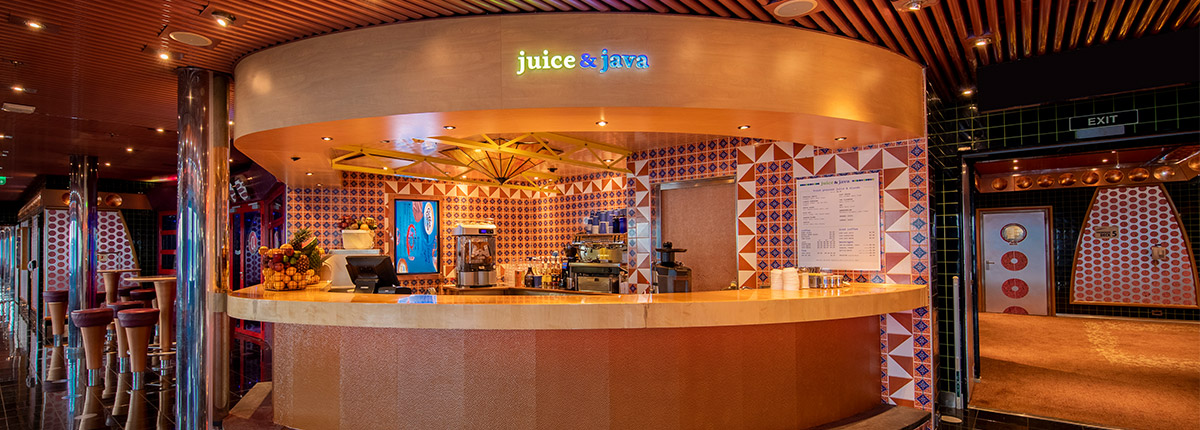 Exclusive to Carnival Splendor, Juice and Java is the spot where refreshing and delicious meets healthy and nutritious. Visit Juice and Java for freshly squeezed, made-to-order juices brimming with straight from the orchard goodness.