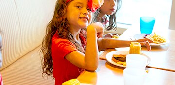 Our kids’ menus, available at most onboard dining venues, feature foods that are delicious enough — and fun enough — to satisfy even the pickiest of eaters. We’ve got all the familiar options they love from home, like spaghetti and meatballs, chicken nuggets, hot dogs, mac-n-cheese, peanut butter and jelly sandwiches and — yes mom — fresh fruit and veggies. They should save room for dessert, though, because with sweet stuff like banana splits and chocolate brownies, your young’uns are going to be pretty excited. There’s even free late-night pizza and soft serve… but these are subject to bed-time, of course.