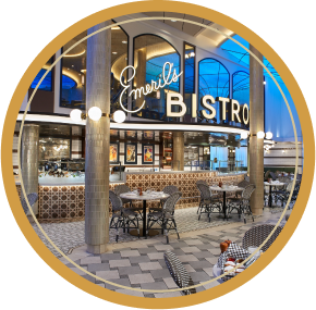 He’ll be bringing his eye for excitement and his legendary taste for flavor to all of our onboard restaurants, everything from casual to fancy... including a few of his own originals: Emeril’s Bistro 1396™ and its Creole classics on Mardi Gras®, Emeril’s Bistro 1397™ featuring international flavors on Carnival Celebration™, plus a third bistro in the works, Emeril’s Bistro 717™, aboard the upcoming Carnival Jubilee™! Aside from the restaurants, one of his most important tasks will be helping us nurture the next generation of culinary talent... plus, when you cruise, keep an eye open for a special Emeril recommendation on the Main Dining Room menu.