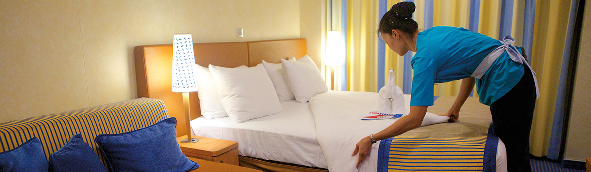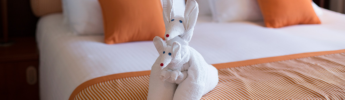 Cloud 9 Spa™ staterooms do things a little different than ordinary staterooms. For starters, we dare you to cross the threshold without feeling a little more relaxed. Once you're inside, you'll find pleasing decor and in-room amenities like Elemis toiletries and spa-branded bathrobes and slippers to enhance your stay.